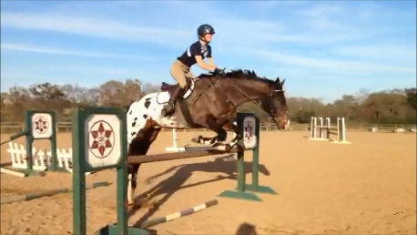 Started wild... settled quickly over trot poles. THen jumped. Learning.... trying different things every time. Finally He's GOT THIS! Like a rolex horse. ;) Holy scope. :)