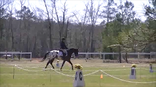 Good for dressage just a little distracted and paying attention to his outside surroundings instead of the task at hand. But good. Scored 38.3, but not too bad. 7 on gaits and impulsion. 6 on submission. ;) Judges comment was something along the lines of "lovely pair, will get better as he is more consistent and you are stronger and better able to control his exuberance". hee hee.
