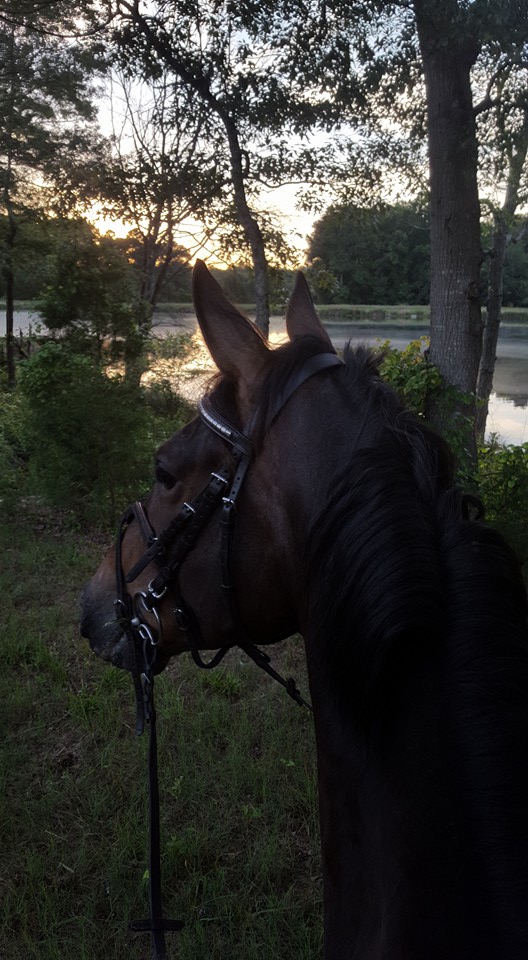Then today we snuck in a short quick hack. I knew I was running out of daylight so I just brushed off his back and threw on the tack. And off we went. He was great as we started off and relaxed and happy. We stopped at the lake to take pictures and stare at the deer. It was a big buck. And so there we were, staring at the lake... with the weird misty swirl on it... and suddenly Dan went straight up in the air! He actually knocked my helmet brim with his head. Dingbat. And then he came back down and was fine. I have no idea what spooked him.. or if anything spooked him.