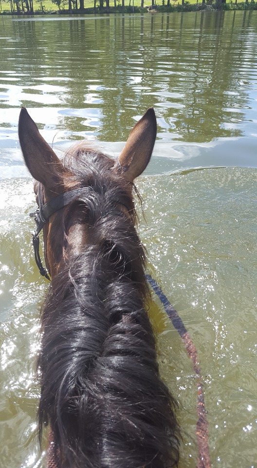 The next step was to go untack and head bareback to the lake!! Fun times. We got there when Elizabeth and Missy were there so we joined in the party. Oh, and then Judy joined us with Cash too. Danny was having fun. We even got to go for a few short swims!! This time without soaking my saddle and without the completely underwaterness. It was super fun.