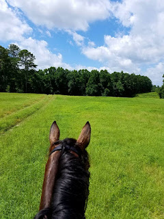 We had a blast today!! It was so nice to have a whole day to just go and play and not rush home. And the weather was almost perfect!! It was hot, but there was a decent breeze and it wasn't too humid and the sky was sooooo pretty! We ended up doing some fitness work to start off our day. I worked him in the XC field and we did some hill work with our intervals. We were going to start off with 3 three minute trot sets, but... 2.5 minutes in, he was so game and kept trying to canter that I made him do two 5 minute trot sets instead.
