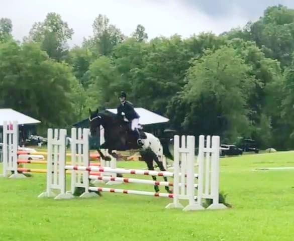 Sun: no rain overnight other than a little... no rain today... bigger studs. warmed up quietly and on point over 3 fences.... spooked at 30 s countdown, maybe at truck and trailer stuck in mud.. maybe not. Spooked and jumped 1 and 2...then downhill to steeplechase fence... run out.... barely over 2nd attempt.. then almost stopped at up bank because so ADD and spooky.. barely over B of up bank... got over 5... then pulled him to a trot and told him to get his shit together before they pulled us off course... and the beast mode the rest of the way... rocked and rolled..