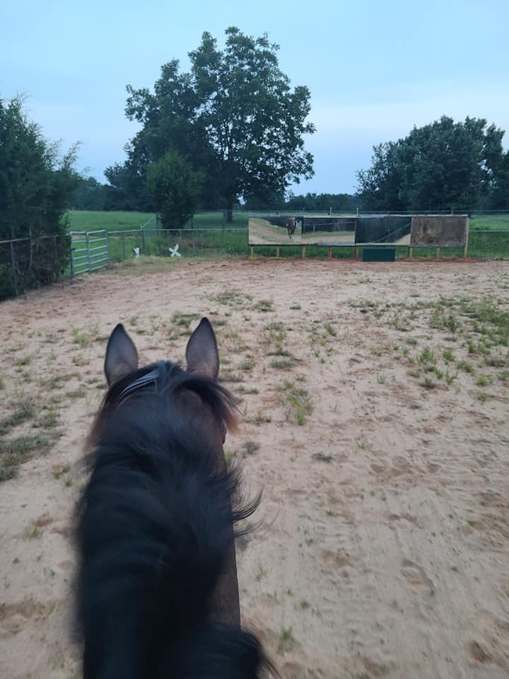 So phew... Both Dan and I were basically dripping sweat and lathered. And basically I've got to insist... every step.. he cannot blow me off or invert or brace. He can do it. Rana had me look at my canter a bunch and showed me how nice it was getting! She said he had a good bit of 3rd level canter today so we know he can do it. She said that he even had some moments of a 4th level canter so she told me to not get frustrated and keep at it and we'd get there!