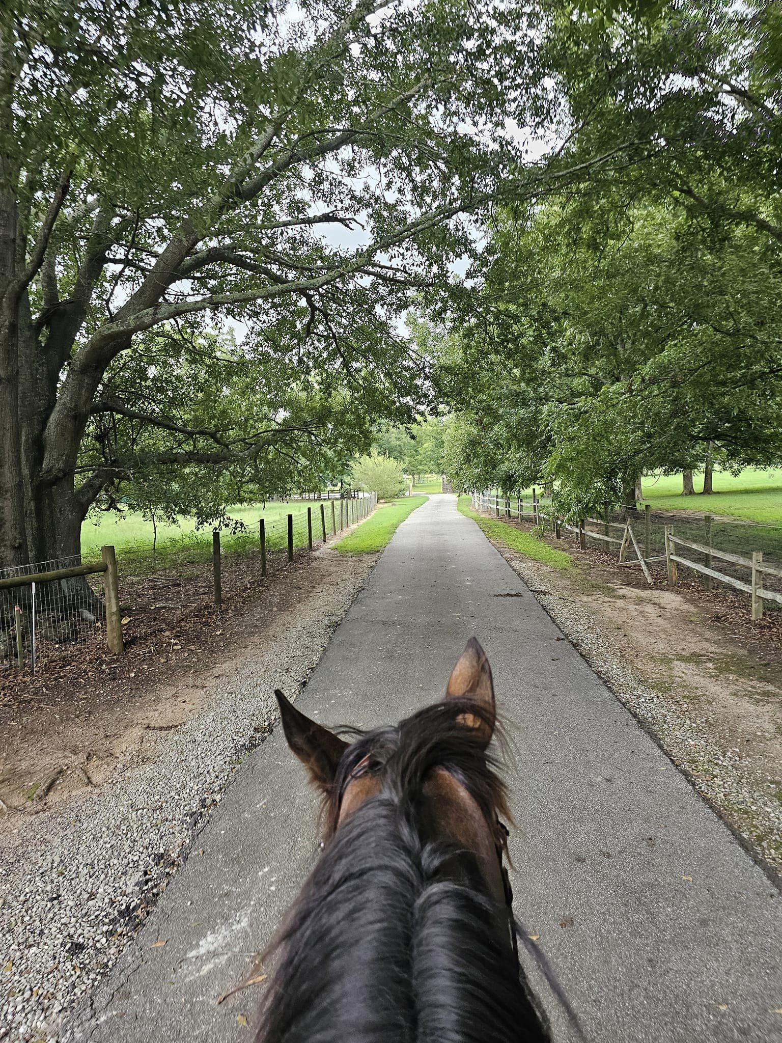 At least we got it done. We rode bareback again and I took him into the arena. We had those ten trot poles set up so I took him through those quite a few times. He was pretty good and actually felt quite floaty and springy! Except for the one time he tripped and almost face planted. Doh! Sorry dude! Although he was quite lazy and didn't really want to trot today. I had to really ask him to do it and then he wanted to fall out of it pretty quickly. So.. not sure what to make of that. He felt fine once he was going. We did some leg yielding at the walk but nothing steep and only a little bit. And I did have him canter on the left lead for about 1/2 a circle. Then we hacked homeand... we were going to go to the lake but we decided not to because of the thunder and the way the skies looked. And like I said, good call.