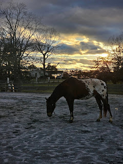 We got good news at our vet visit too. He trotted off "the soundest he's looked yet in his hind end". Which... maybe it's the fasciotomy, but maybe it's the two back and pelvis injections I've done since the last visit. :) Who knows!? And who cares?! He feels good so yay. He did mention that his muscling looked great and how impressed he was at how well he's compensating for the atrophy. He did say he thought the atrophy looked worse, but maybe it's just because the rest of his muscling and topline look so good. He did mention that it was odd because the infraspinatus isn't really responsible for bringing the limb forward. BUT.... I sort of thought it was?? So I don't know. I'm anxious to inject his shoulder girdle and see if that gives me any improvement in his tripping and slight shortness in the swing phase. A few more weeks though. But yes... a great check up and ultrasound and we got cleared to to bump up to 10 minutes of trot and are allowed to do some lateral work. So of course we headed straight to Ashland.
